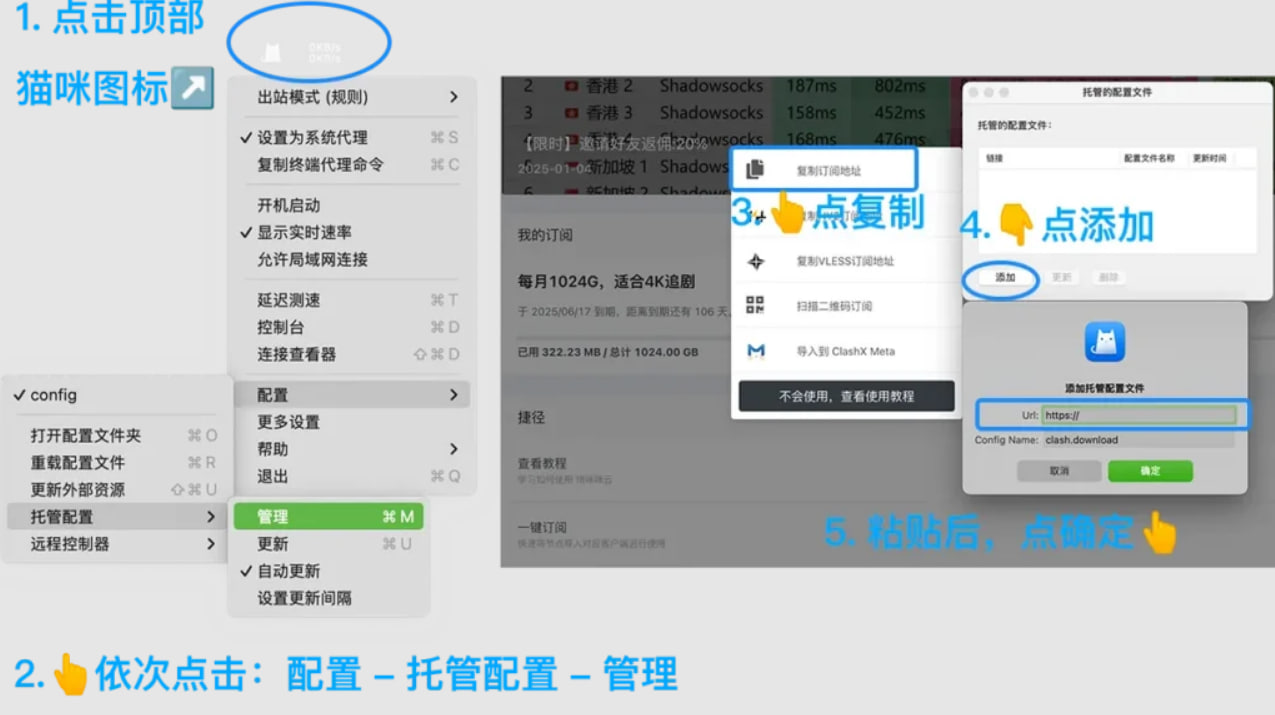 不知道 ClashX怎么用的朋友,跟着这份教程,效果如上,步骤如下,五分钟包教包会!
