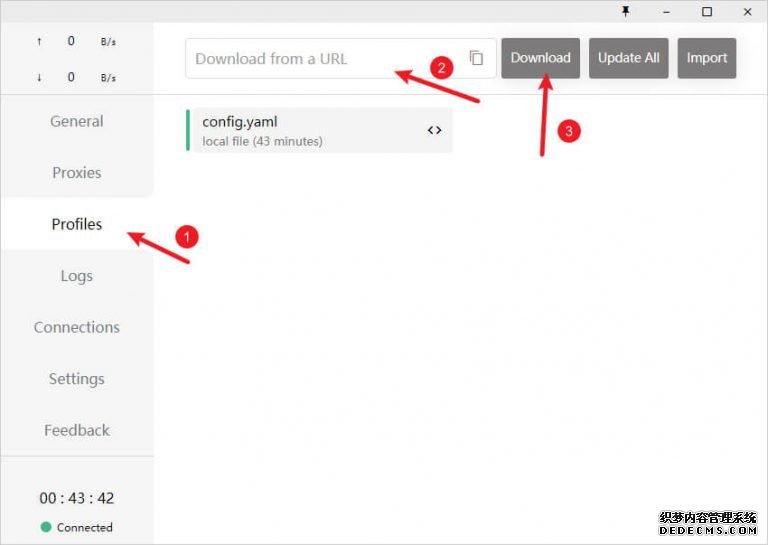 有时候不能正常上网时,可以点击界面左侧菜单 Profiles,点击 Update All 即可更新所有配置文件,如下图所示。